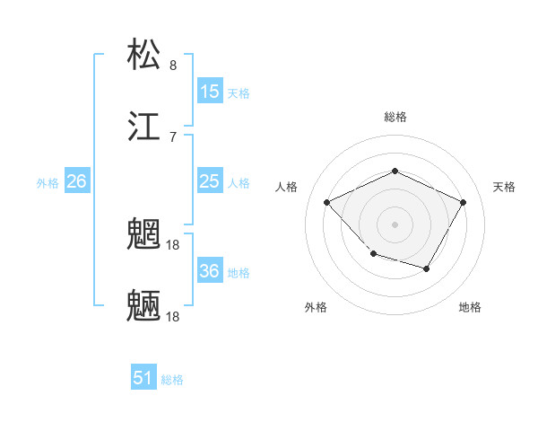 松江 魍魎さんを姓名の画数から五運を鑑定