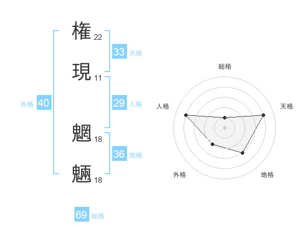 権現 魍魎さんの総格は69画の1点!