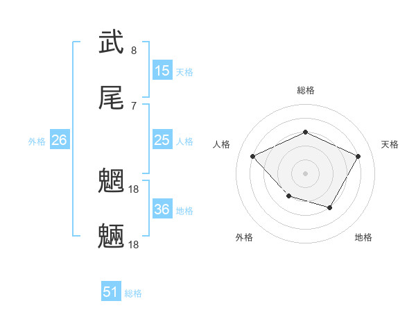 武尾 魍魎さんの総格は51画の3点!