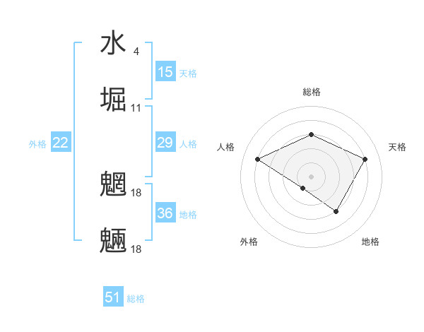 水堀 魍魎さんを姓名の画数から五運を鑑定