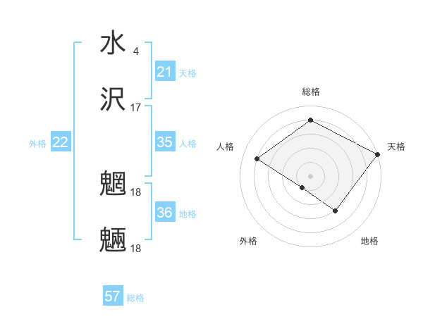 水沢 魍魎さんを姓名の画数から五運を鑑定