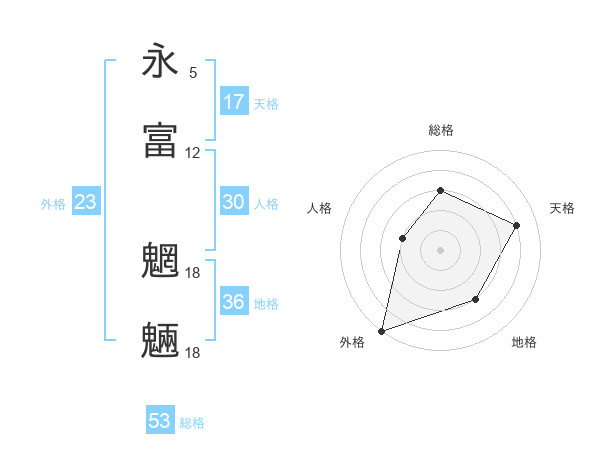 永富 魍魎さんを姓名の画数から五運を鑑定
