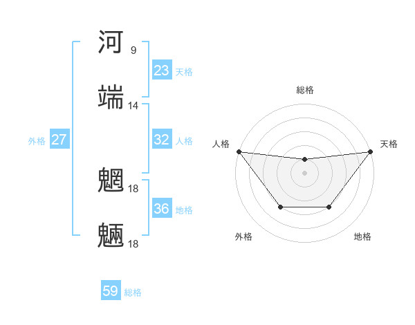 河端 魍魎さんを姓名の画数から五運を鑑定