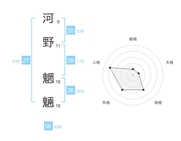 河野 魍魎さんの地格は36画の3点!