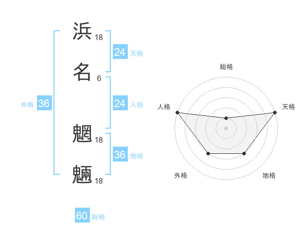 浜名 魍魎さんの総格は60画の1点!
