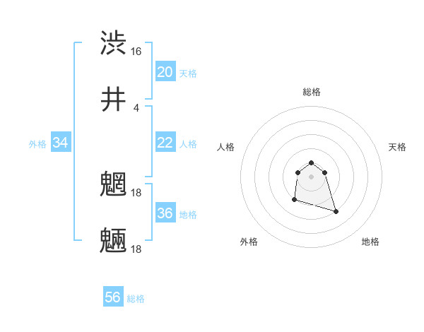 渋井 魍魎さんを姓名の画数から五運を鑑定