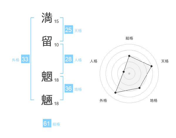 満留 魍魎さんの総格は61画の3点!