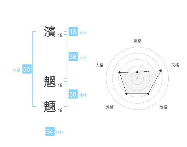 濱 魍魎さんの天格は18画の4点!