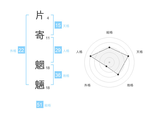 片寄 魍魎さんの総格は51画の3点!