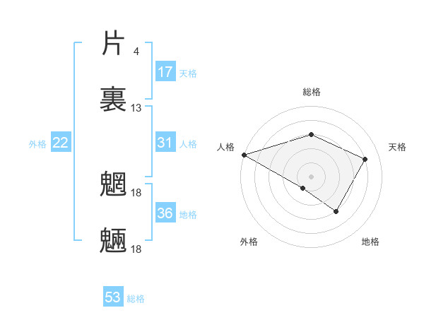 片裏 魍魎さんの総格は53画の3点!