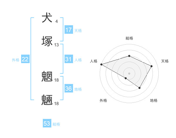 犬塚 魍魎さんの天格は17画の4点!