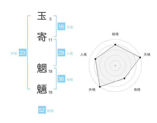 玉寄 魍魎さんの総格は52画の4点!