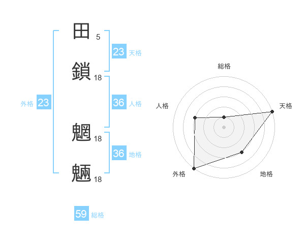 田鎖 魍魎さんの天格は23画の5点!