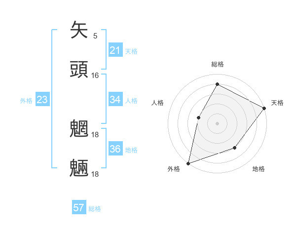矢頭 魍魎さんを姓名の画数から五運を鑑定