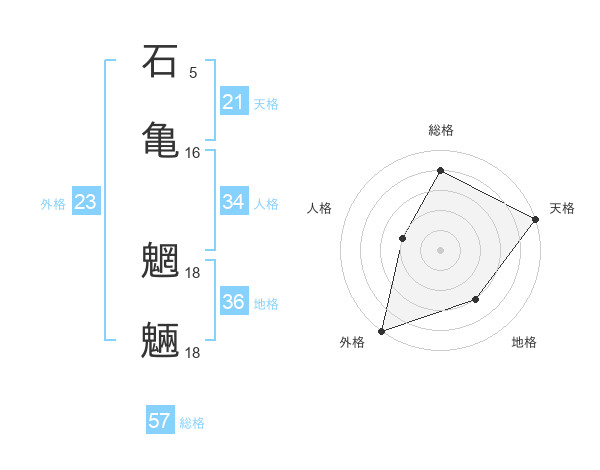 石亀 魍魎さんを姓名の画数から五運を鑑定