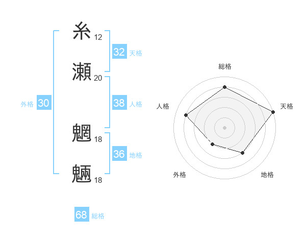 糸瀬 魍魎さんの総格は68画の4点!