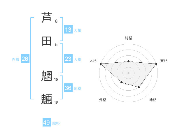 芦田 魍魎さんの天格は13画の5点!