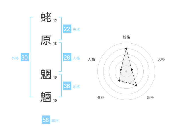 蛯原 魍魎さんの天格は22画の1点!