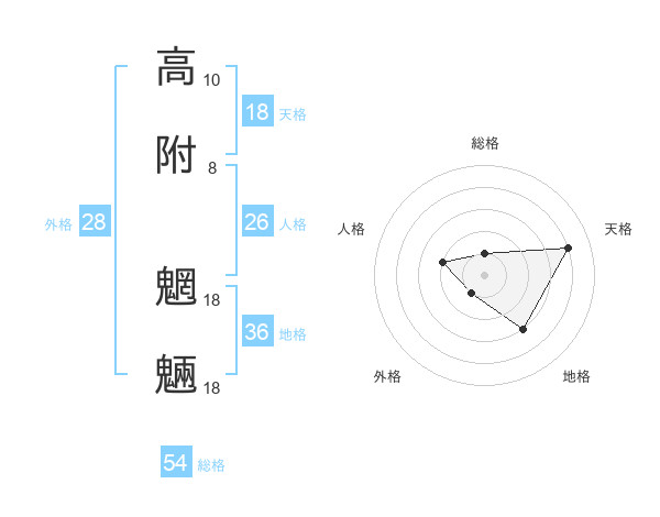高附 魍魎さんの総格は54画の1点!