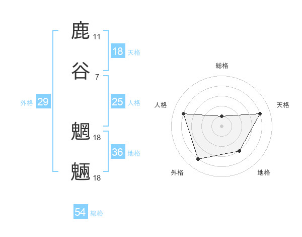 鹿谷 魍魎さんを姓名の画数から五運を鑑定