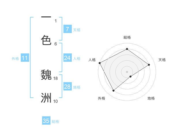一色 魏洲さんの総格は35画の4点!