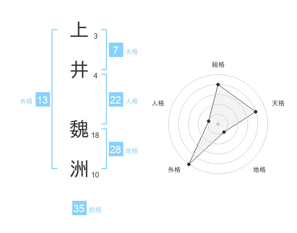 上井 魏洲さんを姓名の画数から五運を鑑定