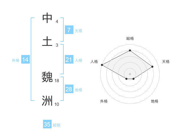 中土 魏洲さんを姓名の画数から五運を鑑定
