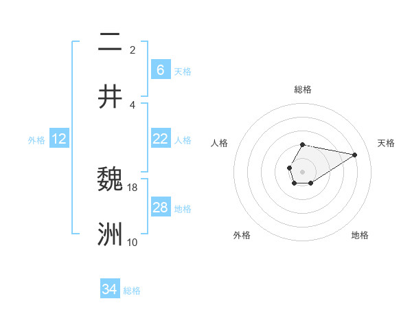 二井 魏洲さんを姓名の画数から五運を鑑定
