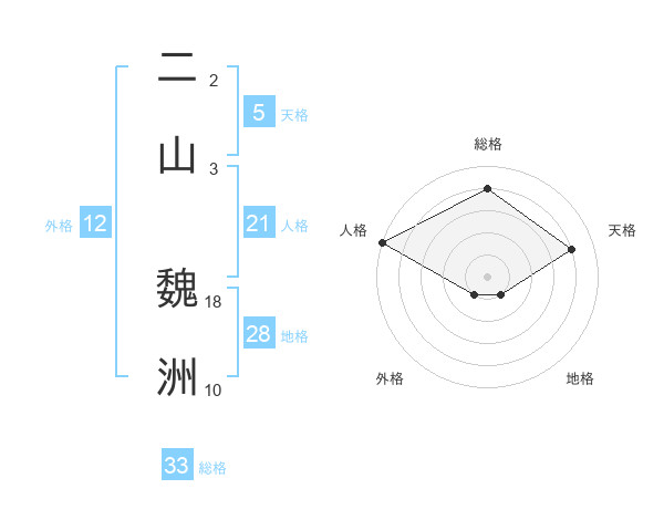二山 魏洲さんの総格は33画の4点!