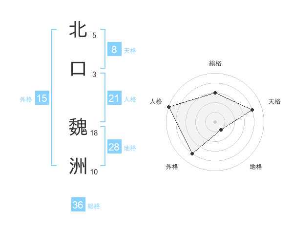 北口 魏洲さんの天格は8画の4点!