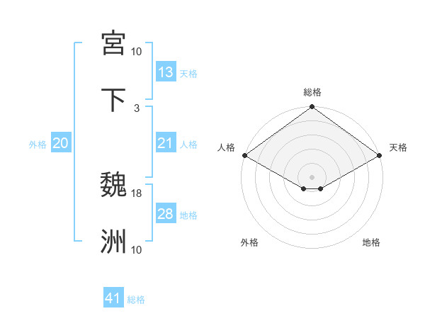 宮下 魏洲さんの総格は41画の5点!