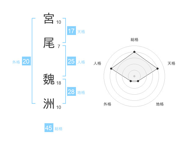 宮尾 魏洲さんの総格は45画の4点!