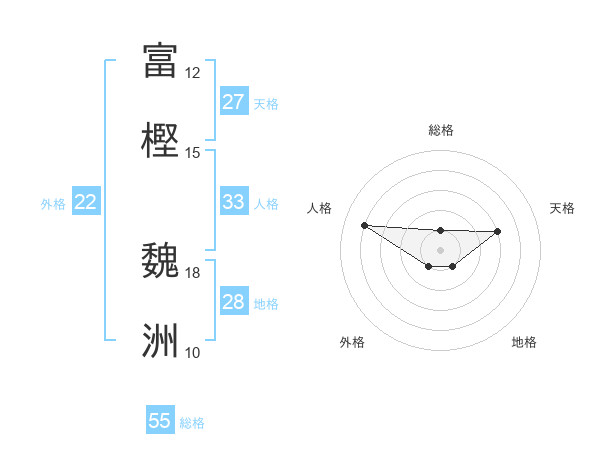 富樫 魏洲さんを姓名の画数から五運を鑑定