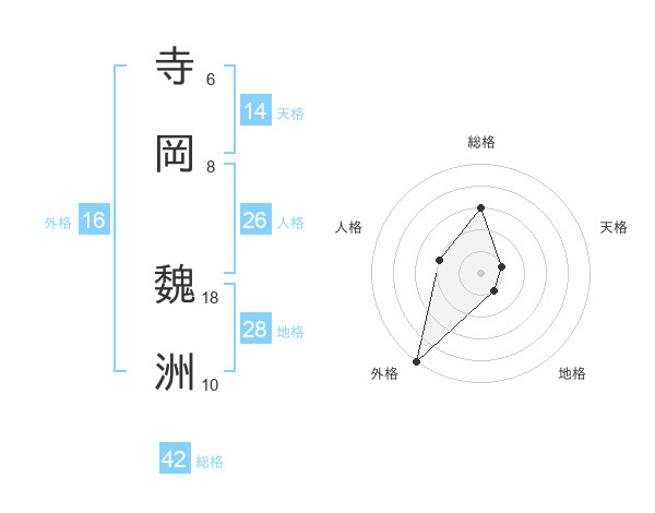 寺岡 魏洲さんの総格は42画の3点!