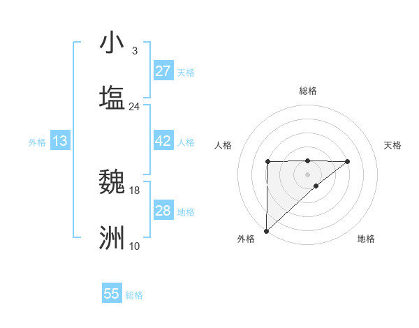 小塩 魏洲さんの総格は55画の1点!