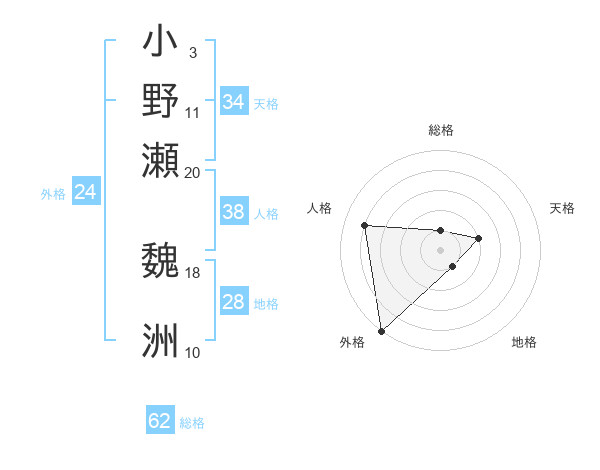 小野瀬 魏洲さんを姓名の画数から五運を鑑定