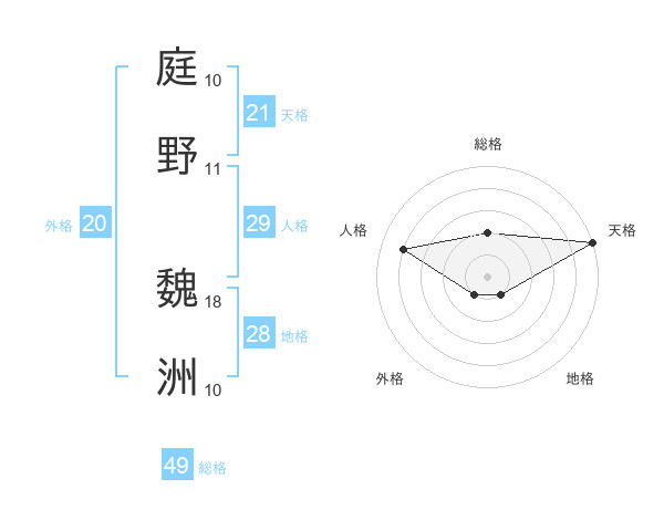 庭野 魏洲さんの総格は49画の2点!
