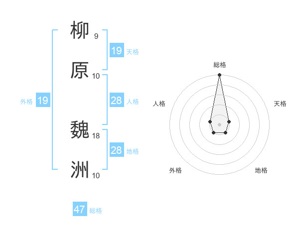 柳原 魏洲さんを姓名の画数から五運を鑑定