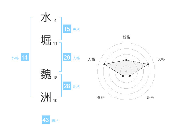 水堀 魏洲さんの天格は15画の4点!
