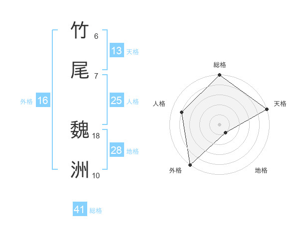竹尾 魏洲さんを姓名の画数から五運を鑑定