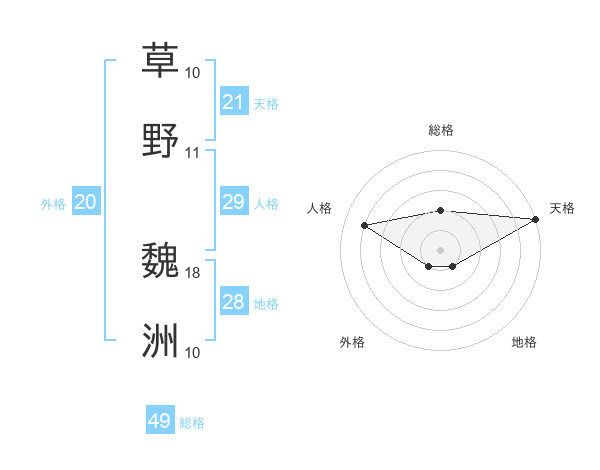 草野 魏洲さんの天格は21画の5点!