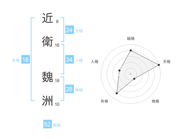 近衛 魏洲さんの総格は52画の4点!