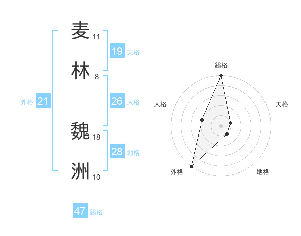 麦林 魏洲さんを姓名の画数から五運を鑑定