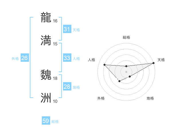龍満 魏洲さんを姓名の画数から五運を鑑定