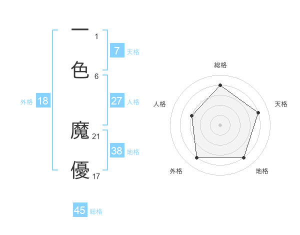 一色 魔優さんの外格は18画の4点!