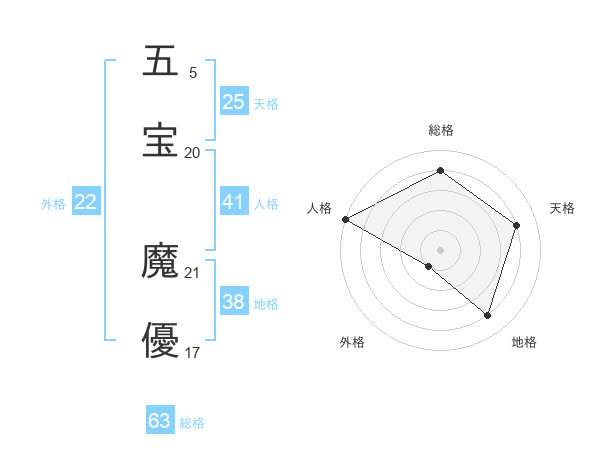 五宝 魔優さんを姓名の画数から五運を鑑定