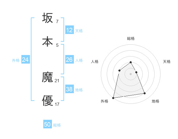 坂本 魔優さんの外格は24画の5点!