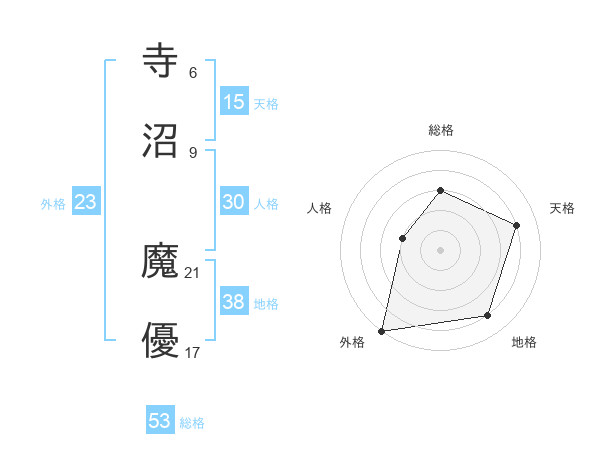 寺沼 魔優さんを姓名の画数から五運を鑑定