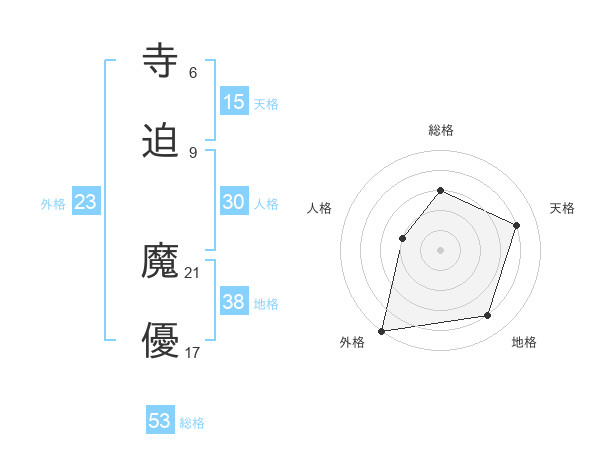 寺迫 魔優さんの総格は53画の3点!