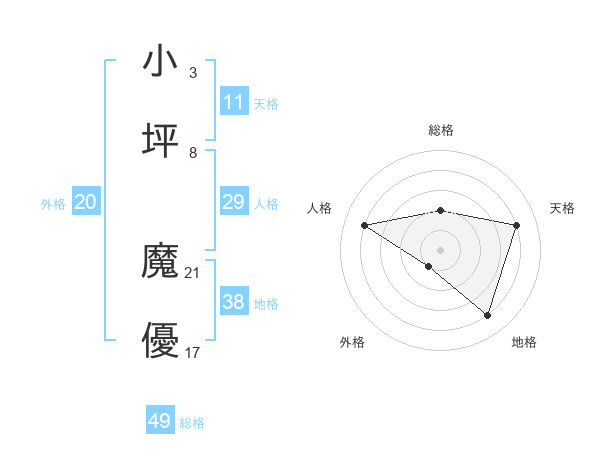 小坪 魔優さんの総格は49画の2点!